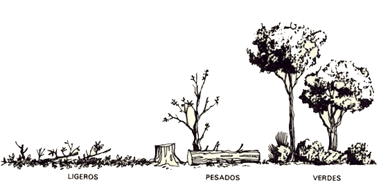 | Según su textura: | Ligera: poca densidad, liviano. Existe poca cantidad de combustible, el cual se encuentra disperso. |