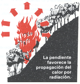 | El contorno de un incendio varia con la dirección del viento | La pendiente favorece la propagación del calor por radiación |
