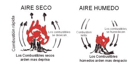 El aire caliente absorbe más humedad, seca y precalienta los combustibles, que arden desprendiendo mucho calor.