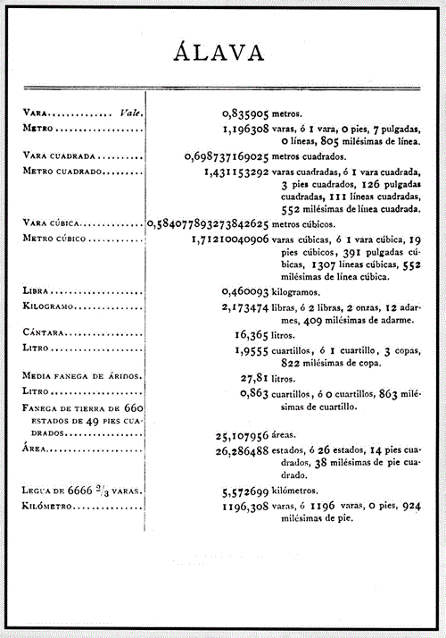 | Equivalencias entre las pesas y medidas usadas antiguamente en las diversas provincias de España y las legales del sistema métrico-decimal |