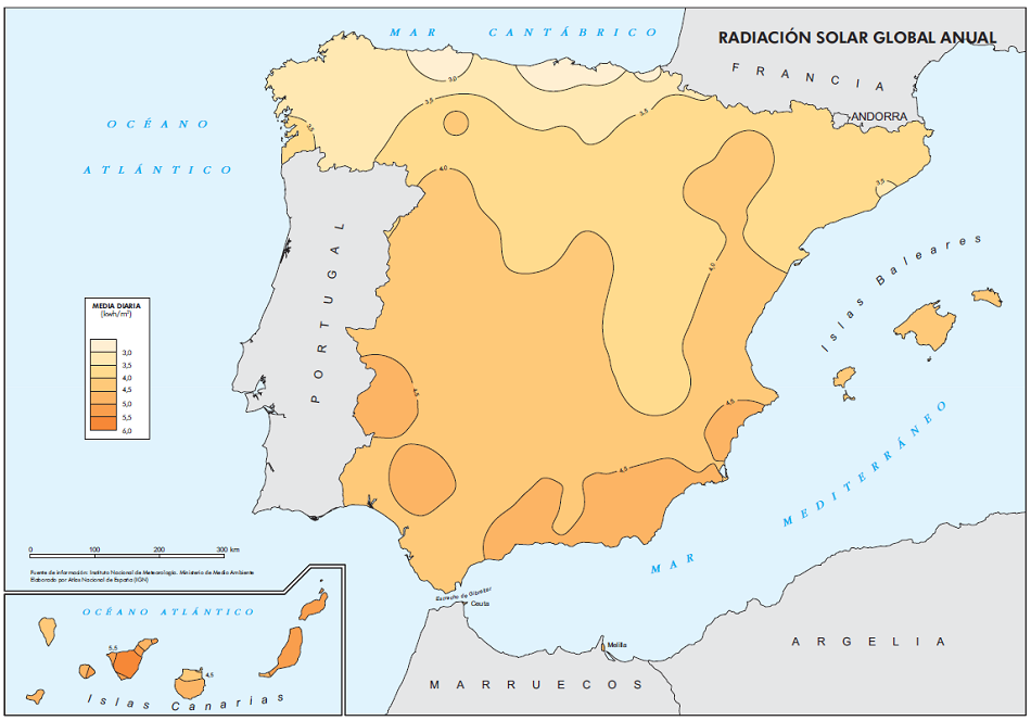 Absorción atmosférica sufrida por la radiación solar en cierto tramo de su espectro incidente, depende de la estructura y densidad de las moléculas y de la longitud de onda de la radiación. |