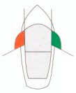 Color: roja con franja ancha verde. Marca de tope (cuando se use): cono rojo punta hacia arriba. Luz (cuando se exhiba): roja, grupo destellos 2 + 1. |