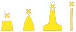 Marcas: dos conos superpuestos. Vértices: hacia arriba (N);