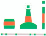 Color: rojo con franja ancha verde. Marca de tope (cuando se use): cilindro rojo. Luz (cuando se exhiba): roja, grupo destellos 2 + 1. |