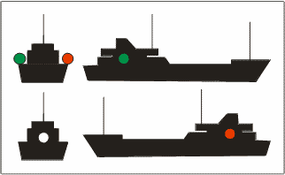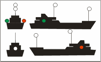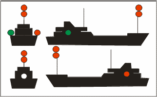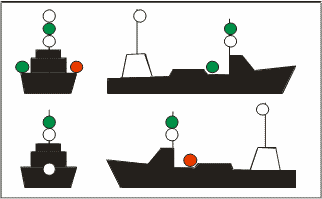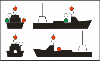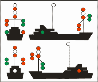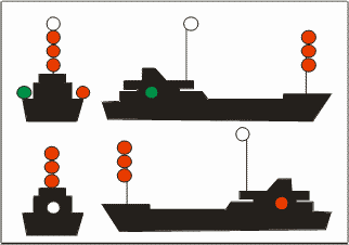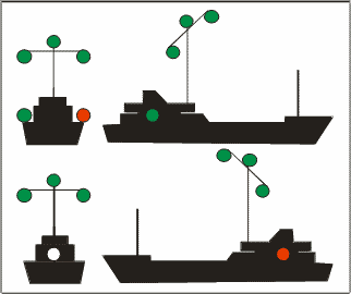 | Buque de pesca de arrastre > 50 metros con arrancada [Semáforo en verde = arrastre]. |