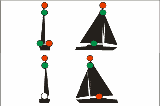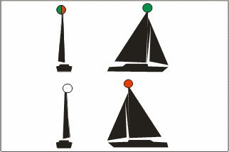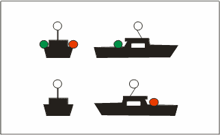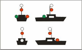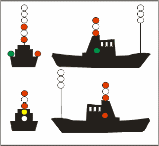 | Buque de pesca no de arrastre con arrancada [Semáforo en rojo = no arrastre]. |