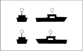 | Buque de pesca, de arrastre o no arrastre, de día. | Buque de pesca no de arrastre de día con longitud de aparejo > 150 metros. |