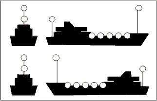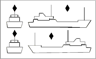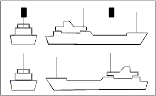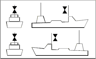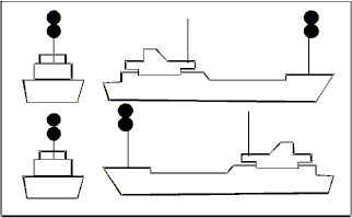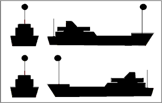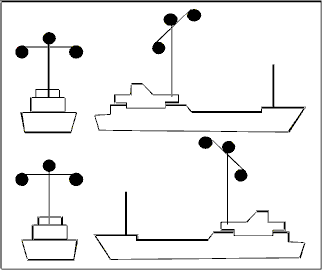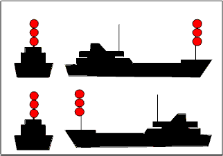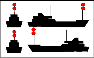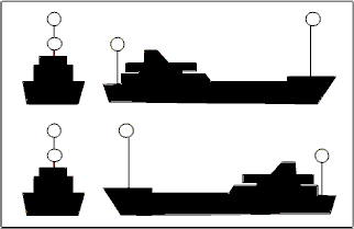 | Buque fondeado > 50 metros. | Buque fondeado < 50 metros. |