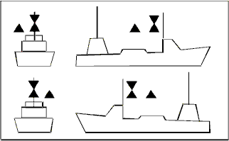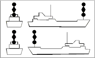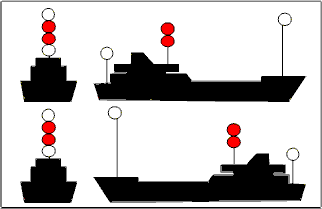 Buque con capacidad de maniobra restringida Dragaminas [Cruz negra]. |
