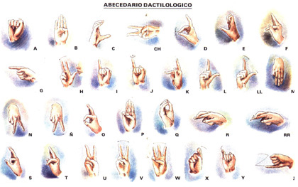 lenguaje por señas y del alfabeto manual puede completarse la comunicación, con gestos