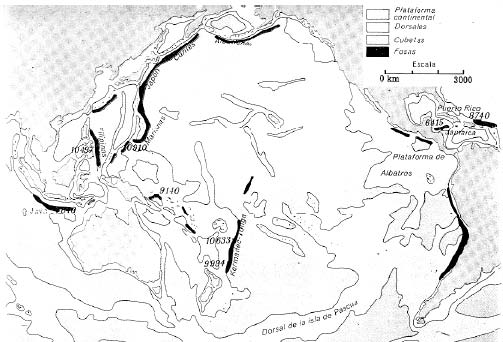 Cubetas marinas. Son inmensas depresiones con profundidades entre 2.000 metros y 4.000 metros, encuadradas por los bordes de las plataformas continentales.