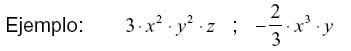 Expresión algebraica donde números y letras únicamente están ligados por la multiplicación: