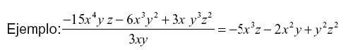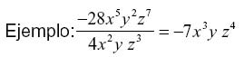 Se dividen los coeficientes, luego se agrupan las bases y se restan los exponentes.