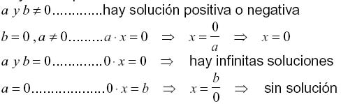 Entonces las posibles soluciones dependen de los valores de a y b. Hay cuatro posibilidades: