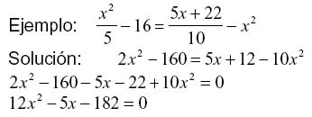 Efectuar las operaciones indicadas, quitar denominadores, pasar todos los términos al primer miembro, reducir términos semejantes e igualar a cero.