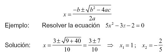 Se demuestra que la solución o soluciones, también denominadas raíces, se obtienen con la fórmula general: