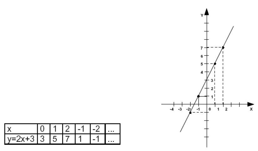 Precisamente la representación gráfica de una función cuya expresión sea un polinomio de primer grado es una recta. Ejemplo: y = 2x + 3 El conjunto de pares de valores será: