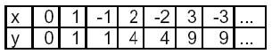 Ejemplo: y = x2 función cuadrática incompleta en b y c el conjunto de pares de valores será: