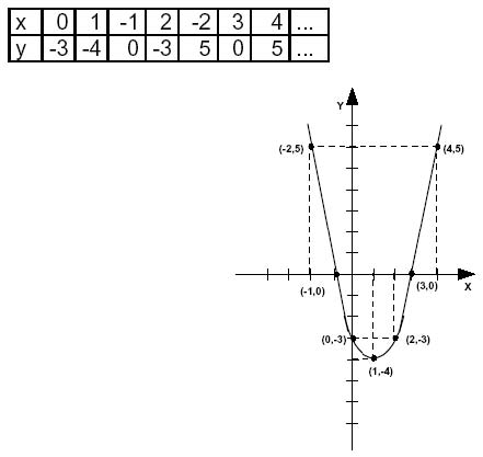 Ejemplo. y=x2 – 2x – 3 función cuadrática completa. El conjunto de pares de valores será: