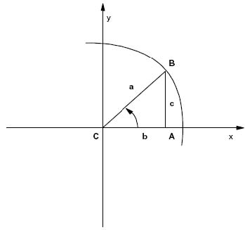 Haciendo coincidir el radio con la longitud de la hipotenusa a, tendremos: