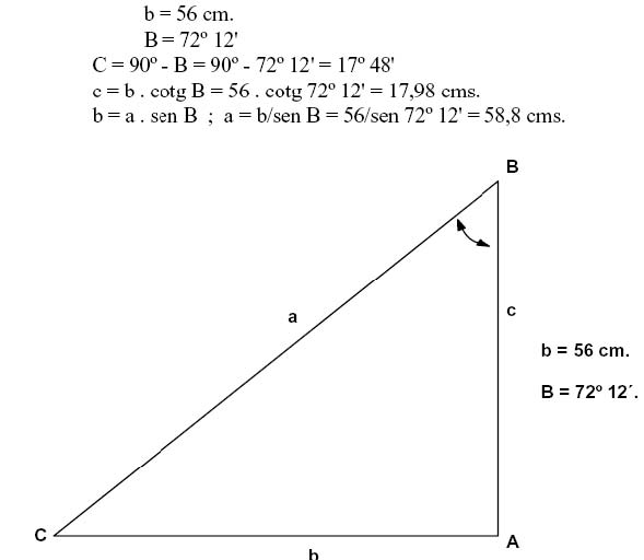 Ejemplo: Resolver un caso en el que se conoce un cateto y un ángulo agudo