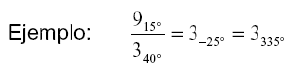 En forma polar, el cociente es otro complejo cuyo módulo es el cociente de sus módulos y el argumento la diferencia de argumentos del dividendo y del divisor.