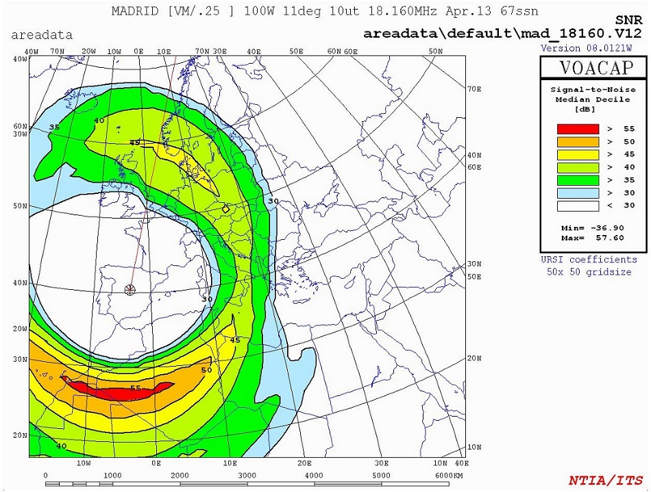 Ejemplo de cálculo de enlaces radio en HF utilizando VOACAP