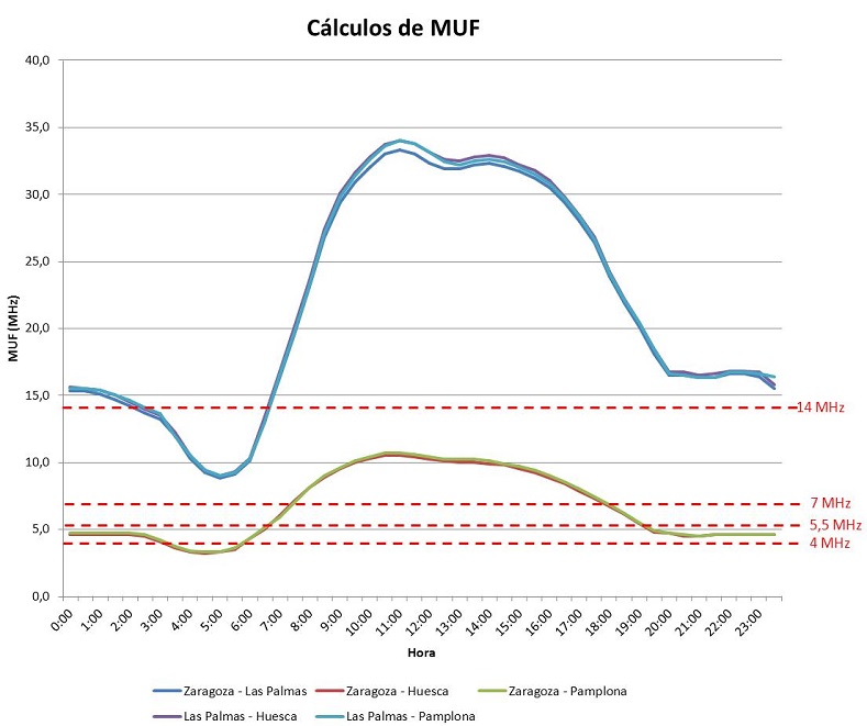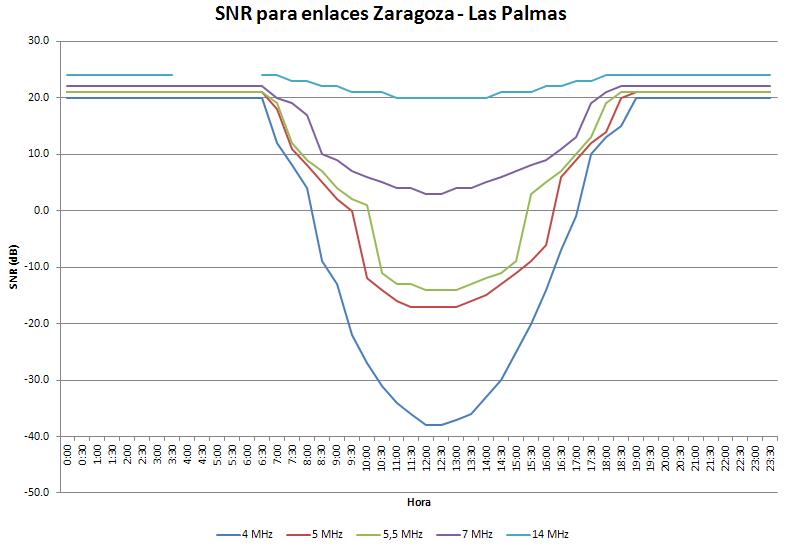 Tanto la MUF como la SNR sufrirán importantes variaciones a lo largo del día, por lo que habrán de tenerse muy en cuenta las franjas horarias en las que se vaya a desarrollar la operación.